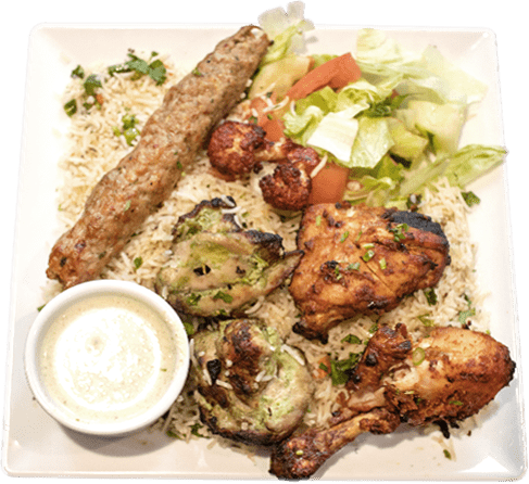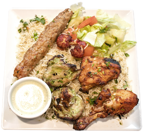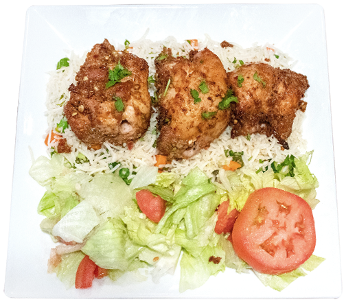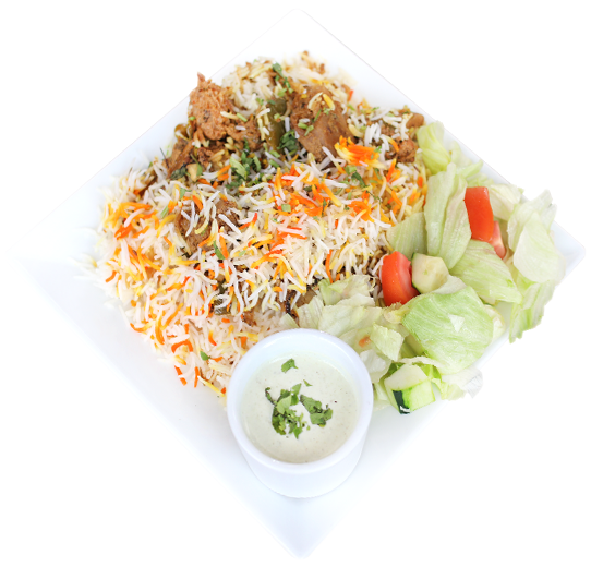 Chicken Boti Boneless $14With Basmati Rice, Salad & Raita