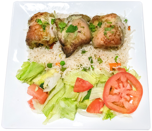 Chicken Malai Boti $14With Basmati Rice, Salad & Raita